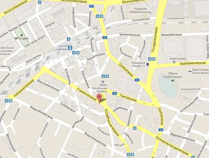 Tram 10 11 14, Bus 62 63 94: Zürich, Sternen Oerlikon (eine Gehminute)